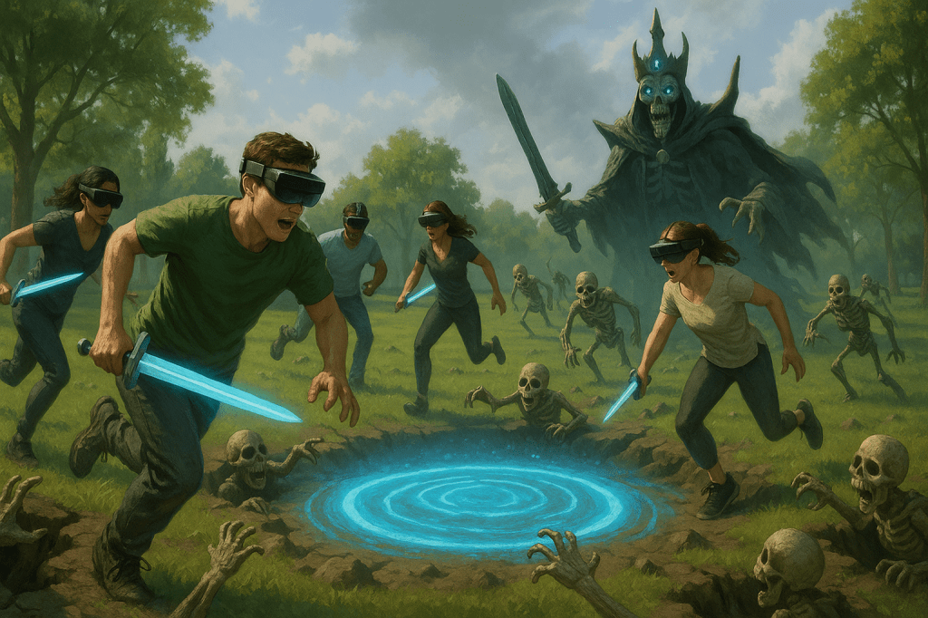 The World is a long-term project to turn real parks and public spaces into a living, walkable AR MMORPG. With AR glasses and mixed reality headsets, we’re layering a fantasy world over our own—so you’re not just playing a character, you’re walking beside them.